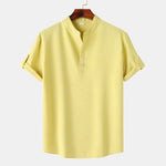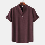 - Men's Solid Color Stand Collar Short Sleeve Shirt