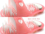 This massager slipper is used to clean and message your feet from heel to toe, giving you clean and smooth feet. Cleaning and massaging, no more bending to clean your feet. Slipper shape, reasonable design and convenient handling. Suction cups at the bottom adhere to floor and hold it in place. Smooth heels with built-in pumice stone, this stone is detachable. Simply Clean your foot by slipping it in and out.