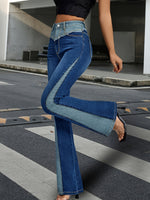 - Fashion Stitching Contrast Color Denim Bell-bottom Pants Women