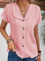 - Solid Color Fashion Short Sleeve Cardigan Button Women's Top
