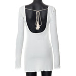 Women's Autumn Bubble Thread Pure Color Halter Lace-up Backless Dress