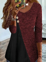 - Women's Knitted Button Solid Color Long-sleeved Top