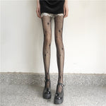 - Schwarze Sternenhimmel-Strümpfe, weibliche Stern-Mond-Netzstrümpfe