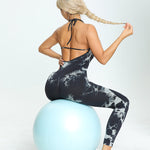 - Batik-Yoga-Kleidung für Damen, pfirsichfarbener Jumpsuit mit Hüftheben