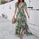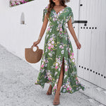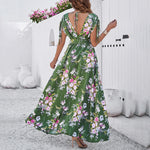 - Women's Fashion Temperament Leisure Printed Lace-up Large Swing Dress