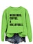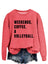 Color: orange sweater (black font), dark green sweater (white font), sand sweater (black font), brown sweater (white font), black, Hoodie (white font), white hoodie (black font), pink sweatshirt (black...