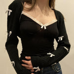 - Fashion Women's Bow Stitching Ultra Short Blouse Lace Vest Suit