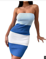 - Waist-tight Color Matching Woolen Tube Top Dress