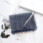 - Autumn And Winter Striped Cotton And Linen Pleated Scarf Shawl