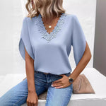 - Lace V-neck Flared Sleeves Loose Shirt