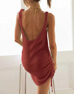 Solid Color Sleeveless Dress With Drawstring Design Fashion Sexy Beach Bikini Top Cover-up Skirt For Womens Clothing