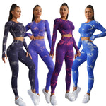 - Tie-dye Outdoor Fitness Breathable Long Sleeves Yoga Suit Women