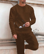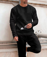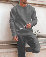 - Enfärgad digitaltryckt rundhalsad tröja byxa herrkostym