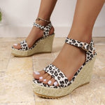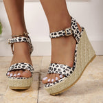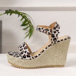 - Bältesspänne Nya leopardsandaler med kil för kvinnor