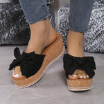 - Mode rosett leopardtryck kiltofflor för kvinnor Nya tjocksula högklackade platta skor sommar utomhus fisk mun tofflor