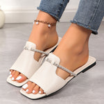 - Mode Rhinestone Rem Design Sandaler Sommar Ny fyrkantig tå tofflor med låg klack för kvinnor Slides Casual Beach Shoes