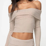 - Båthals långärmad stickad tröja Off-shoulder Crop Short Top SFor Damkläder