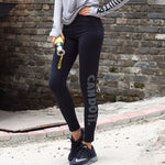 Cross boundary rörelse bronzing alfabet hög elastisk träning Yoga löpning fitness visa tunna dam byxor