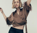 - Mode dammanschett med fjäderkant kort silkesatinskjorta