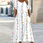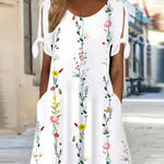 - Ny A-linje tryckt lös bekväm kortärmad klänning för kvinnor