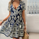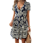 - Kvinnors Temperament Fritid Holiday Blommigt tryck V-ringad klänning