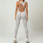 Yoga Jumpsuit V-formad Ryggdesign Ärmlös Fitness Löpning Sportkläder Stretch Tights Byxor För Damkläder