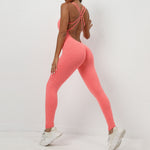 - Yoga Jumpsuit med korsband Ryggdesign Snabbtorkande åtsittande Löpsport Fitnessbyxor Mode Sömlösa Leggings För Damkläder